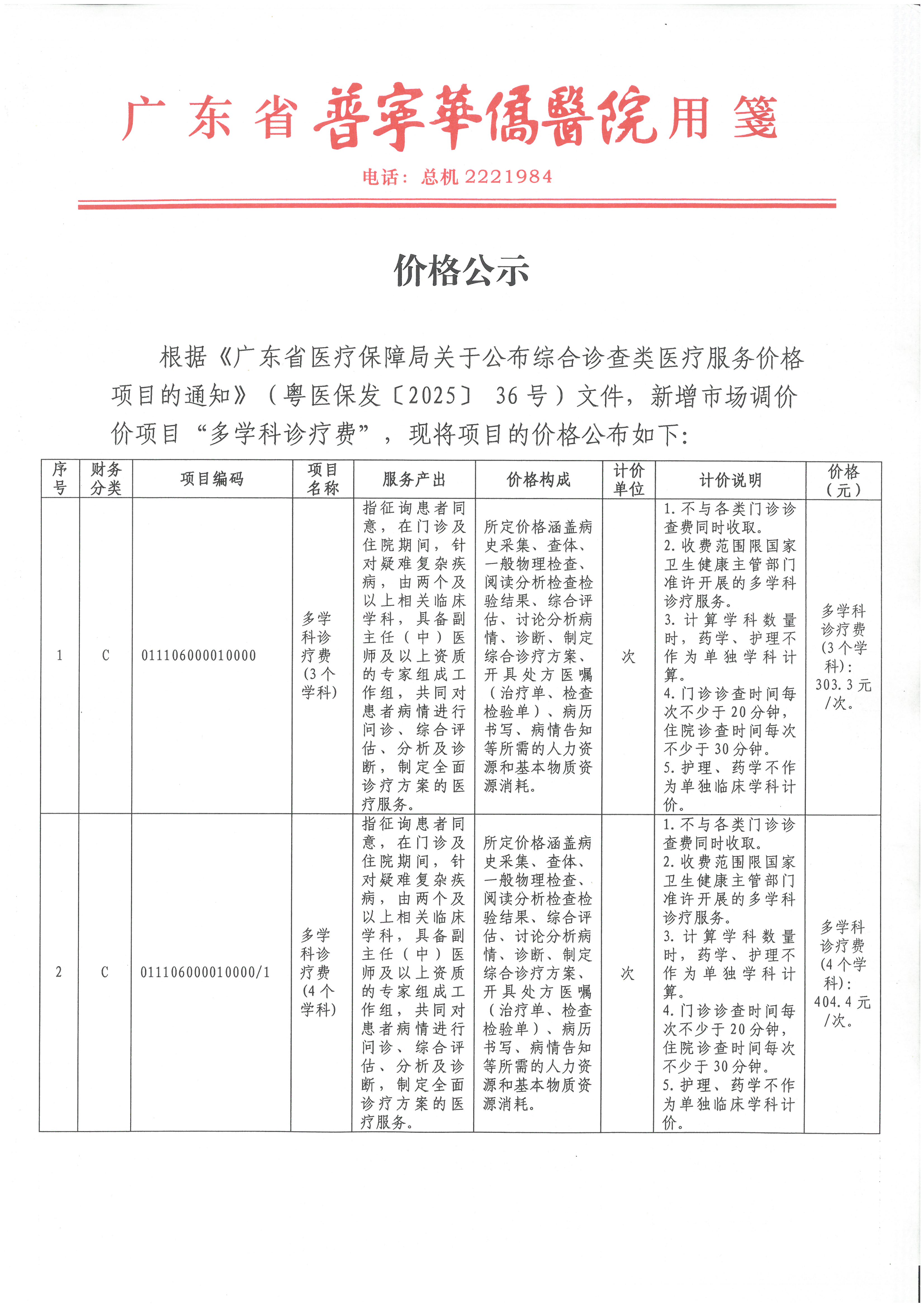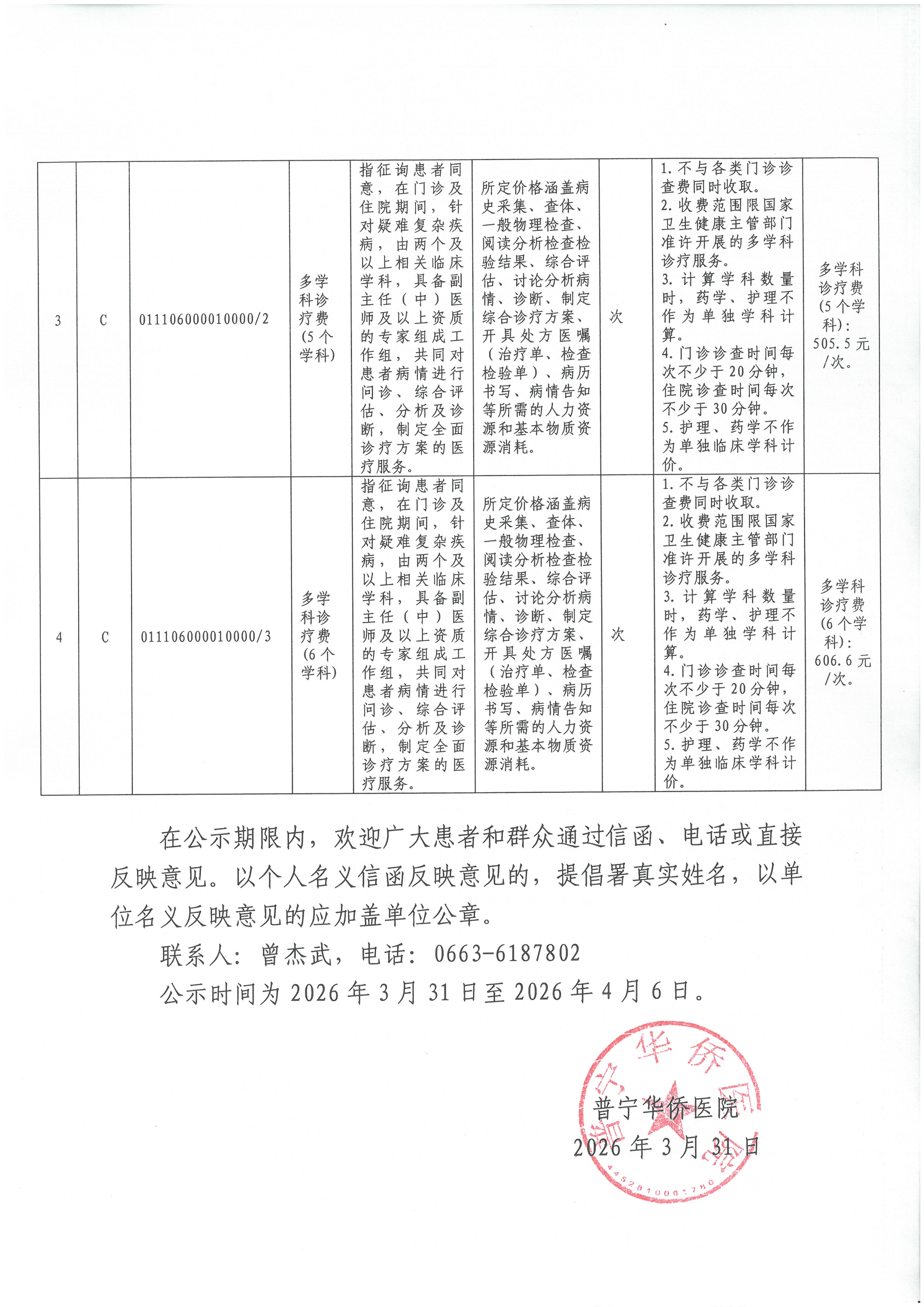 关于“多学科诊疗费”的价格公示